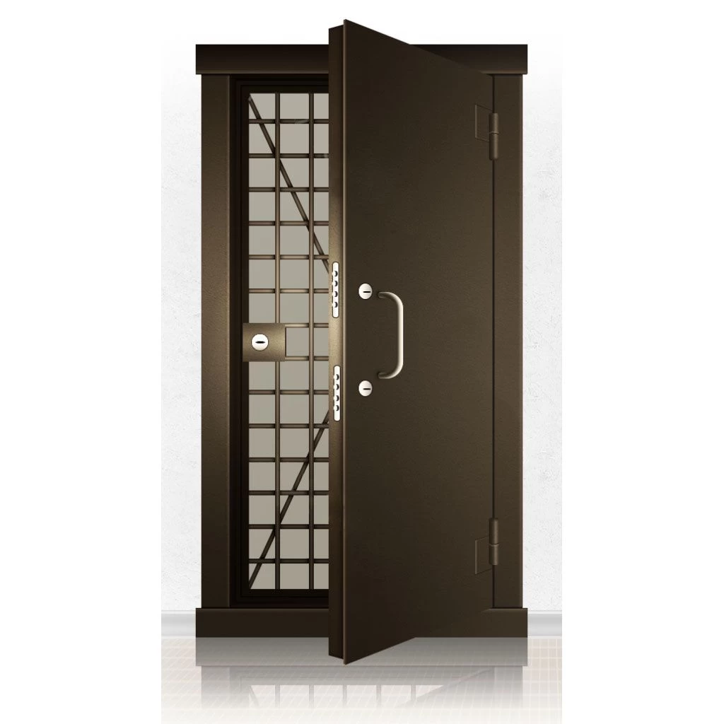 Металлические двери КХО и КХН представляют собой входные блоки, обладающие высоким уровнем взломостойкости и состоят из трех основных элементов: усиленного каркаса, сплошного металлического полотна и решетчатой двери. Дверной блок изготавливается из стального уголка 100*100 мм. Места крепления блока к стене цементируются и закрываются стальными наличниками шириной 40 мм. Крепеж заходит вглубь стены на 80 мм. В конструкции внешней створки монтируются ребра жесткости, для обшивки используется сталь толщиной не менее 3 мм. Внутренняя решетка изготавливается из прутка диаметром 16 мм. Размер ячеек решетки должен составлять не более 15 на 15 см. В точках пересечения прутья надежно приваривают друг к другу. В КХО и КХН необходимо поддерживать определенную температуру и влажность. Для этого внутреннее пространство глухой двери заполняется теплоизоляционным материалом, а по периметру двери приклеивается уплотнитель. Такие двери оборудуются замками с повышенным уровнем взломостойкости. Специализированные двери КХО и КХН в Белгороде могут быть оснащены сигнализацией, в конструкции могут быть проушины для навесного замка и элементами для опечатывания. Если идет речь о двери в комнату хранения оружия, в створке оборудуется окно для выдачи оружия и спец. средств, которое накрывается стальной дверцей.
