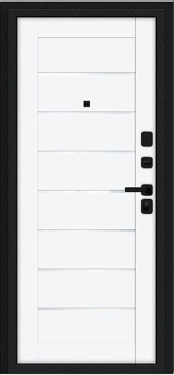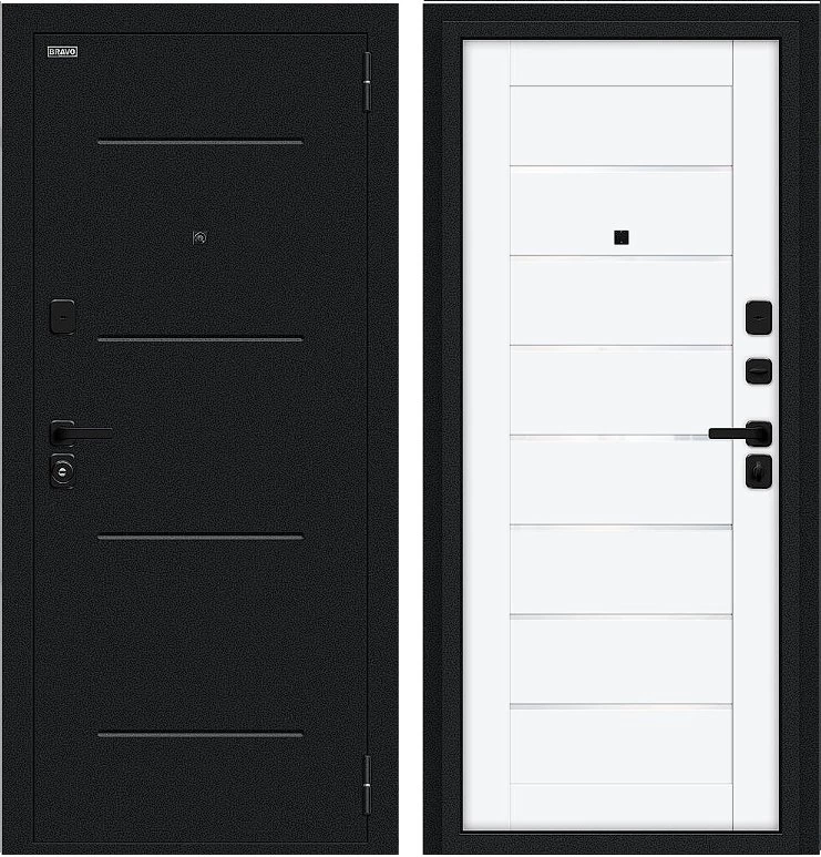 Надежная входная Дверь Браво Техно/SBlack Букле черное/White Silk премиум класса по цене 34 719 руб. Большая толщина стали защитит от проникновения в ваш дом, квартиру или коттедж. Используется очень качественная фурнитура: замки, цилиндры, ручки, защелки. Покрытие и отделка двери изготовлено под внимательным контролем производителя. Дверь имеет долгий срок службы и гарантию.